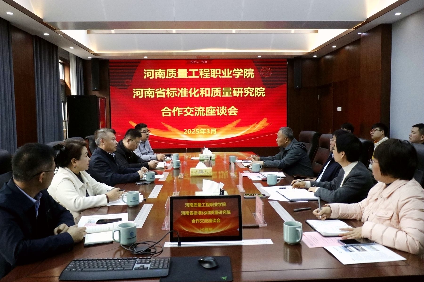 3月14日上午,河南省标准化和质量研究院副院长张中杰一行5人来学院进行交流座谈,副院长张虽栓,校企合作处、经济与管理学院、质量科学研究中心负责人及部分教师代表参加座谈会。